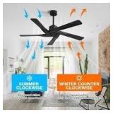 54 in. 5 Blades 6 Fan Speeds in Black Ceiling Fan without Light