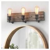 - Farmhouse wood vanity light adds modern retro flair