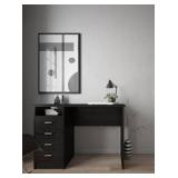 Office minimalist meets sophistication with the desk. This desk provides 1 open shelf for easily accessible items with plenty of storage to assist with office clutter. The drawers are backed with metal glides with built-in safety stops with a foil finish, the topcoat provides durability and protects against stains, smears, and fading.