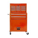 The tool trolley is equipped with a total of 8 drawers and a large storage space with a tool box, The tool box is also lockable and can be used as a removable, attachable and mobile case attachment.