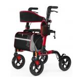 Dexmalle 6-Level Adjustable Height Lightweight Aluminum Frame Rollator Walkers for Seniors RED