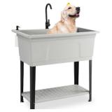 Vingli 37-Gallon Freestanding Utility Sink with Faucet, 36" Heightened Basin for Laundry, Garage, Outdoor Garden, Pet Wash, Heavy Duty Plastic Laundry Tub with Storage Shelf, 40"L×24"W×36"H, Grey