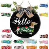 16 Pcs Interchangeable Dog Wooden Door Hanger Ornaments Rustic Dachshund Seasonal Home Sign Replaceable Hanging Vertical Welcome Sign Front Door Porch Decor for Wall Outdoor Xmas Fall Decor (Black)