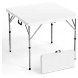 VINGLI 34" Fold in Half Square Table, Bi-Folding Commercial Table, Portable Plastic Dining Card Table for Kitchen or Outdoor Party Wedding Event, White