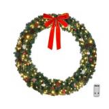 60IN OVERSIZED LIGHTED CHRISTMAS WREATH WITH PINK BOW – VINGLI 60 inch prelit Outdoor Christmas Wreath Decoration features a huge silver metal wreath with a glamorous pink bow, perfect as a large front door garland to dress up your gate, garage, exterior wall, porch or indoor entryway with festive elegance.