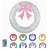 VINGLI 60IN Prelit Outdoor Christmas Wreath Decoration, Large Silver Lighted Metal Front Door Garland with Pink Bow, 280 RGB & Red LED Lights for Gate Wall Porch Indoor Outdoor Holiday Party Decor