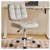 Ktaxon Armless Office Chair with Star Base PU Swivel Task Chair with 9-Grid Design for Study Room or Dressing Area Light Gray