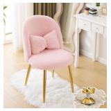 VINGLI 32-in H Fluffy Girls Vanity Chair with Back Pillow and Ajustable Gold Legs Plush Pink