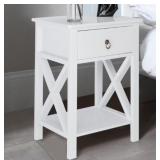 White Wood Beside Table Nightstand with Drawer, Side Storage End Table for Home Office Bedroom Living Room Furniture