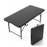 VINGLI 4 FT Black Height-adjustable Plastic Folding Camping Table Portable in Outdoor Party Picnic Dining
