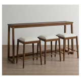 (250) Forma 4pc Mid Century 72 in. Walnut Rectangle Wood Counter Height Console Table with 3 Stools
