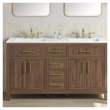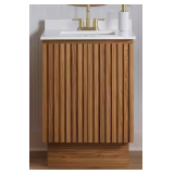 - Crafted from premium solid wood and MDF, this bathroom vanity combines lasting durability with modern style. Full-extension drawers and soft-close door hinges provide smooth, quiet use, while the eco-friendly waterproof finish adds both protection and elegance.
