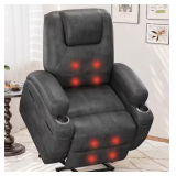 LACOO Black Leather Standard (No Motion) Recliner with Power Lift