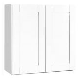 Hampton Bay Shaker 33 in. W x 12 in. D x 36 in. H Assembled Wall Cabinet in Satin White