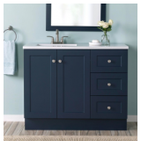 (51) Glacier Bay Bannister 43 in. Single Sink Deep Blue Bath Vanity with Granite-Look Colorpoint White Cultured Marble Top (Assembled)