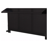 - These 2 items combined make it very easy to move this work bench around your workplace. Underneath the left-side handle is an integrated power strip with 6 outlets and 2 USB ports, which will allow you to charge your tools and electronic accessories.