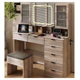 Transform your bedroom or dedicated beauty space into a luxurious sanctuary with our comprehensive makeup vanity. Combining sleek design with practical functionality, it offers unparalleled storage solutions, convenient charging, customizable lighting, comfortable seating, and a spacious work area. Elevate your daily routine and embrace a new level of elegance and convenience with this vanity table set.