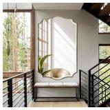 POZINO Scalloped Beveled Mirror, 30"x48" Brushed Gold Rectangle Bathroom Mirrors, Brass Wavy Vanity Mirrors for Wall, Modern Large Irregular Shaped Mirror for Living Room Bedroom Fireplace Entryway