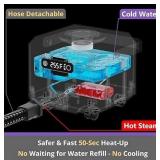 [Refill Anytime (Non-Pressurized Tank)]: Non-pressurized cool-water tank design lets you open the cap and refill anytime while steaming—no waiting for cooldown or pressure release like traditional pressurized canister steamers. [50s Fast Heat-Up + Steam Power]: Ready in 50 seconds with 1650W heating power, 230–260°F steam temperature and 60 PSI pressure to loosen grime on tile, grout lines, bathroom & kitchen messes. [Large Tank for Longer Sessions]: 0.6 gal / 2.2 L tank supports longer cleaning sessions with fewer refills—great for larger bathrooms, floors, and car interiors. [21-Piece Kit + Detachable Hose]: Includes a 21-piece accessory kit (mop head, nylon/brass brushes, squeegee, triangular brush, etc.) plus a detachable hose for easier storage and reaching tight areas during tile/grout and car detailing. [Dry/Wet Modes]: Two steam modes (drier vs wetter steam) for different tasks. For Sealed tile & grout, ceramic/porcelain tile floors, sealed hard floors (including sealed hardwood/engineered wood), glass and stainless steel, and car interior hard surfaces. [Use Guidance]: To ensure the steam is dry enough, press the steam trigger to expel any condensed water left in the hose from the previous use.For floors, use the mop head with a microfiber mop pad and keep the mop moving. For fabrics: Use the triangular tool with bonnet, wipe continuously, and avoid staying in one place to prevent over-wetting. Heat-resistant gloves are recommended during operation.