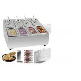 Lanstics Pizza Topping Station Pizza Storage Container Topping containers with Lids Spoon Condiment Organizers Buffet Containers Set for Restaurant Pizza Sauce Jam Fruit Ingredient Pantry (8 Pans)