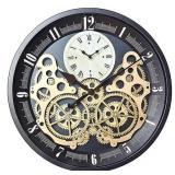 UNIQUE DESIGN CONCEPT:The elegant and noble style of the watch is magnified and extended into the production of wall clocks. This not only enhances personal enjoyment but also presents the elegant and fashionable style of the watch to a wider audience GEAR CLOCK WITH MOVING GEARS:The classic wall clock is design with multi-real moving gears. Its rotation is powered by an independent low-noise motor, which will not affect the accuracy of the quartz clock movement.Put batteries in,gears start to move,the precise quartz movement runs smoothly, you will feel relaxing and peace MATERIAL QUALITY: The wall clock is made of metal and plastic, with a metal frame ensuring durability and aesthetics. There are fake rust marks on the clock face, which have a retro and industrial effect, showcasing personality. This clock adopts a tempered glass cover, which is durable and dustproof. The clock body comes with a hook, which is easy to hang without installation BATTERY OPERATION:The clock and gears are operated by independent battery cases. They can operate simultaneously or independently (Batteries are not included) HOME DECORATION:This blend of modern & retro industrial steampunk gear clock not just for telling time, but also perfect for adding artful appeal to your wall. Beautiful metallic Wall Clock which is fits most decor whether rustic farmhouse, kitchen, dining room, living room, bar, restaurant, coffee house, office,school and more