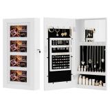 Inner Mirror & Outer Photo Frame: You can put your favorite photos or pictures in the photo frame we prepared on the surface. Then the inner mirror can help you dress up more conveniently, with no need to go to other mirrors Super Storage: In addition to the photo frame feature, the internal storage is also powerful and multifunctional High quality - It is constructed with quality glass, durable MDF material and soft velvet. The MDF material is durable for long time use and the velvet lining adds protection for valuable jewelry Space-Saving - 3.54"D x 12.2"W x 24.4"H, designed for mounting on the wall instead of taking up any floor space. You can mount it anywhere at home to meet your needs Easy to Set Up - The cabinet comes pre-assembled so you don’t have to take a hassle to set it up, just mount it on the wall with anchoring screws that come with it