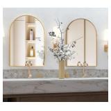 Wall Mounted Mirror, Arched Wall Mirror for Bathroom, 20"x30" Arch Bathroom Mirror with Metal Frame, 2 Piece Gold Vanity Mirror Decor for Bedroom, Entryway, Living Room