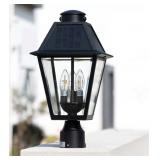 【SOLAR POWERED SUPPORT】: Equipped with solar panels and 3 E12 bulbs, the outdoor Solar Street Light is powered by the sun, which supports long-term operations and maximizes energy-efficiency. Auto charging 6 hours during the Day, lighting up more than 10 Hours at night. 【THREE MODES】 The solar post light comes with motion sensor that offers three lighting modes: ① Stay on at 100% brightness at night.(Maximum 10 hours); ② Only turn on at 100% brightness when detects any motion (60s) ; ③ Always 10% brightness on at night + turn to 100% Brightness when detects any motion(60s). 【MEETING MORE USAGE NEEDS】 Three modes satisfy various usage requirements, making it suitable for outside use in garage,yard, porch, and swimming pools, etc. And in Auto mode and Dim mode, it can better meet your usage needs in less sunny weather. 【VINTAGE DESIGN】Aluminium body and clear glass create the unique style of this post lantern. The vintage design makes this fixture not only easy to install but also an excellent garden decoration. 【WEATHERPROOF & DURABLE】: Designed with durable rust-resistant heavy-duty aluminum construction with high-quality glasses, the street lamp is suitable for outdoor use in all weather conditions.