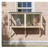 Safe Outdoor Experience: Our catio outdoor cat enclosure is made of soild fir wood and bite-friendly galvanized wire mesh,offers indoor cats a safe outdoor experience. Three triangular brackets with corner blocks provide excellent support Better Mental Health for Cats: In our 3-sided window catio, your indoor cats can breathe in the fresh air and bask in the warm sunlight while observing birds and other wildlife around them, satisfying their curiosity and hunting instincts Large Space Cat Box: With size: 41.3" x 24" x 23.42", our comfy cat perch for window sill offers a generous lounge area for your cats. Suitable for all most window which width is smaller than 38". Both wooden houses and brick walls can be installed Excellent Weather Resistant: Designed to adapt to various weather conditions, the window cat house uses a weatherproof roof, ensuring that your cats can enjoy outdoor activities whether it's the scorching summer or the chilly winter Connect Multiple Units: The cat window perch is not only suitable for standalone use but can also be connected with multiple. Regardless of how many cats you have at home, the flexible connection design caters to the needs of you