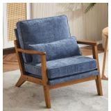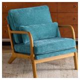 This armchair combines the best of cozy comfort and mid-century design. Upholstered in the fabric of your choice, it offers a classic look and feel that's soft to the touch. This chair's angular frame is made from solid oak wood with a rustic brown finish, while foam filling provides ample cushioning for the seat and back. A stylish coordinating pillow gives it both an added layer of texture and lumbar support. We also love that its overstuffed headrest lets you lean back and sink in after a long day. Place it in your living room or create a reading spot in your guest room. Accommodates up to 330 lbs.