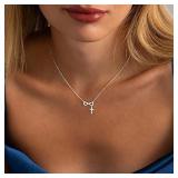 925 Sterling Silver Necklace for Women Trendy, Charming Layered Necklace with Cubic Zirconia Pendant for Her Womens Dainty Diamond Choker Necklaces Holiday Jewelry Gifts for Mom Wife Daughter Lover