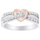 Adds A Touch Of Nature-Inspired Beauty To Your Look Two Tone Heart Promise Ring In 14K White Gold Over Sterling Silver Makes a Standout Addition to Your Collection With Round White Natural Diamond Accent Having 0.20 cttw
