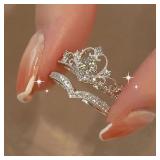 Fashion Crown AAA Zircon Engagement Anniversary Open Ring Set 2 Pieces Princess Crown Tiara Rings with Tiny CZ Diamonds, Set of Rings(Silver)