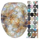 SANILO Wooden Toilet Seat with Soft Close [ELONGATED] - Decorative, Quiet & Slow Close Molded Wood Seat - With Strong Bumpers & Hinges - Adjustable Fit - Marble Brown