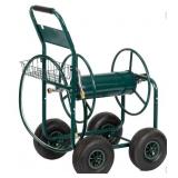 VINGLI 4-Wheel Garden Hose Reel Cart with Storage Basket, Portable Residential Hose Reel Cart Green