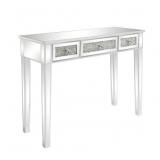 3-Drawer Mirrored Vanity Makeup Table - Mirrored Console Desk Vanity Furniture Nightstand Glass Bedside Table, Silver