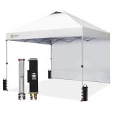 CROWN SHADES 10x10 Pop Up Canopy with 1 Side Wall - Beach Tent with One Push Setup - Outdoor Sun Shade for Events, Parties, Camping - Gazebo with STO-N-Go Cover Bag (White)
