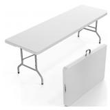VINGLI 8 Foot White Rectangular Plastic Folding Table with Carrying Handle for Indoor Outdoor Use