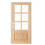 (146) Krosswood Doors 36 in. x 80 in. 3/4 6-Lite with Beveled Glass Unfinished Right Hand Hemlock Prehung Front Door