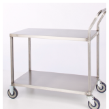 - Kelmax Utility Cart, 2-tier, open base, single loop handle, shelf size approximately 18" x 32" with 3 sides up & 1 down, stainless steel construction with welded handle, 5" stem casters, 650 lb. capacity, NSF
