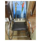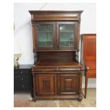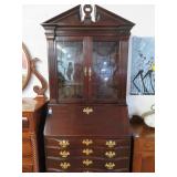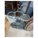 Fancy dresser with turned column decoration and cradle mirror; Serpentine front secretary with bookcase top with impressive arch; Art Nouveau double umbrella stand; Bed; Secretary; Old water pump lamp; Padded keg seat; Chrome & leather bentwood shape rocker; Painted cradle; Elephant garden seat; Brass & glass bamboo style leg table; Fine candelabras of brass, crystal & marble;