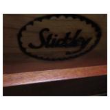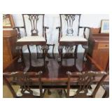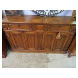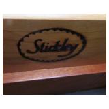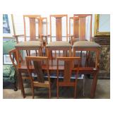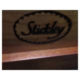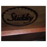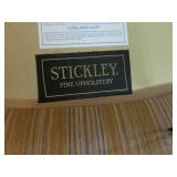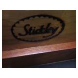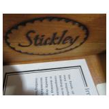 FURNISHINGS: STICKLEY! Dining table & leaf with 6 chairs; Buffet with glass top; Double door bookcase; Drop-side end tables with medallion & string inlay; Round banded edge table; Sofa table pair with banded edge and medallion inlay; Dining table with leaf and 8 chairs; Stickley pairs of upholstered chairs; Arts & Crafts clock; Kindel pair of upholstered chairs; Kindel sofa with accent pillows;