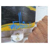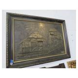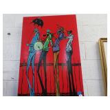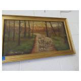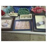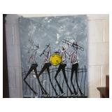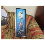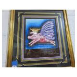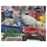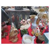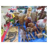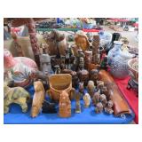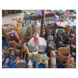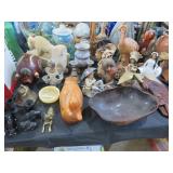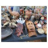 ART, SILVER & METALS: Lots of New Orleans second line parade signed original artwork, various artists; Ship at sea; Large carved wooden eagle; Rudolph Koller print; 2012 Artist Proof of flying crowned pig; Floral still life; Walkers in a field of poppies; Sheep & shepherd in woods; Antiquite’ de Paris clock; Embossed metal farm buildings artwork; Two women artwork; Framed crazy quilt square; Signed watercolor of forest church; Christmas mantel art; Wire sculpture of hot air balloon with art glass balloon; Glass him & her sculptures; Owls sculpture; Metal trumpeter; Lots of ethnic carvings; Middle American decorated pottery; Totem stick; Small busts; Lots & lots of carvings; Animal sculptures; More fine art!