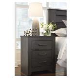 Priced to entice and styled to impress, this alluring nightstand is urban sophistication with a decidedly relaxed air. It’s got the crisp, clean lines of a contemporary piece, but with an earthy element. Replicated oak grain effect gives the chic charcoal finish warmth and character. Linear pulls are a sleek touch.