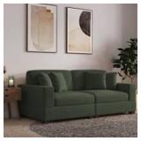 2 - Piece Upholstered Green Corduroy Modular Sectional with Pillow Back and Solid Wood Legs