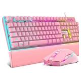 RedThunder K10 Wired Gaming Keyboard and Mouse and Wrist Rest Combo, RGB Backlit, Mechanical Feel Anti-ghosting Keyboard + 7D 7200 DPI Mice+Soft Leather Wrist Rest 3 in 1 PC Gamer Accessories(Pink)