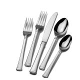 Classic style gets a modern twist with this 65-piece harmony flatware set by Mikasa. The handle silhouette moves gently from narrow at the head to wide at the squared tip and is accented by subtle bands at the neck and base that make a bold impression. Gleaming with a lustrous mirror finish, this vibrant flatware is crafted from superior quality 18/10 stainless steel for lasting beauty and can be used for all occasions, whether a formal affair, a weekend brunch, or a casual dinner with friends and family. 65-piece set, service for 12, includes 12 each of dinner fork, salad fork, dinner knife, dinner spoon, and teaspoon, plus 1 of each serving tablespoon, pierced tablespoon, cold meat fork, butter serving knife, and sugar spoon. Dishwasher safe.