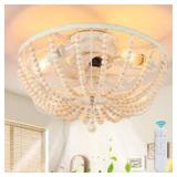 Deyidn 19.69 in. Modern Farmhouse Boho Ceiling Fan with 4-Light, Wooden Beads Ceiling Fan with Light Kit and Remote