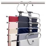 SPACE SAVING PANTS HANGERS : 5 tier trousers hangers. Each hanger can at least hold up 5 jeans, trousers or other clothing. Maximize to save your closet space and keep it clean and orderly. Strong bearing strength and won't be easy to be out of shape