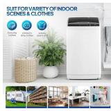 This electric laundry washer weights 54.81lbs and 22.24" x 22.40" x 35.94" (L x W x H) portable size perfectly fits your apartment, dorm room and the little corner of your house. Package Includes: full-auto washing machine, manual book, rat-proof board and water supply hose with faucet adapter